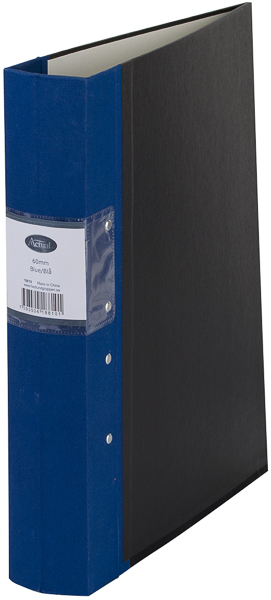Tygklädd träryggspärm med gaffelmekanism av stål och två låslägen.
