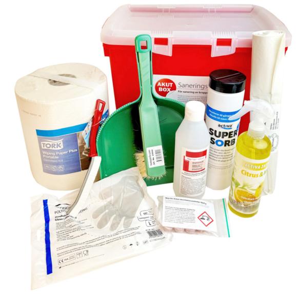 - SuperSorb. Absorberande pulver som strös ut över våta föroreningar.