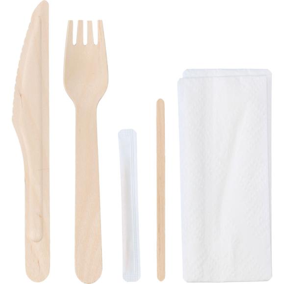 Bestick set i trä med servett- komplett, hållbart och hygieniskt!