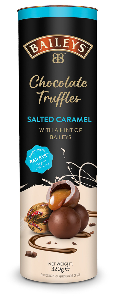 Mjölkchokladkulor med fyllning av krämig tryffel. Smaksatt med Baileys Original