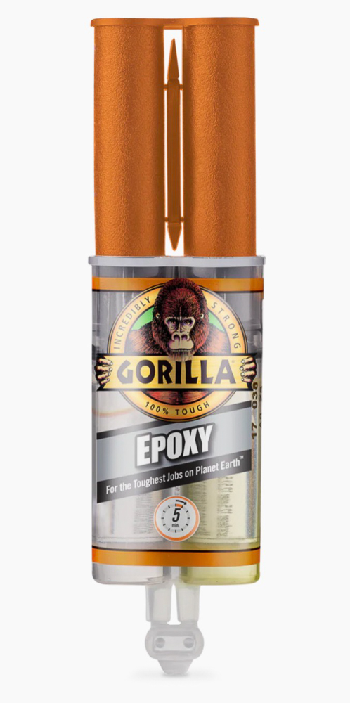 Tvåkomponentsformulan i Gorilla Epoxy härdar på 5 minuter. Limmar plast, trä,