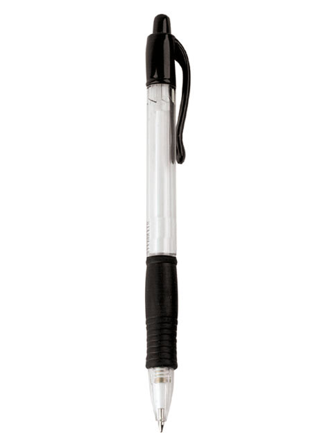 Transparent kropp med färgade detaljer, clips och gummigrepp. 900 meters