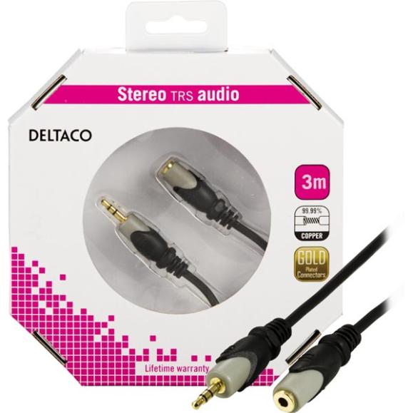 Ljudkabel MM-161-K hane-hona 3,5mm stereo 3 meter