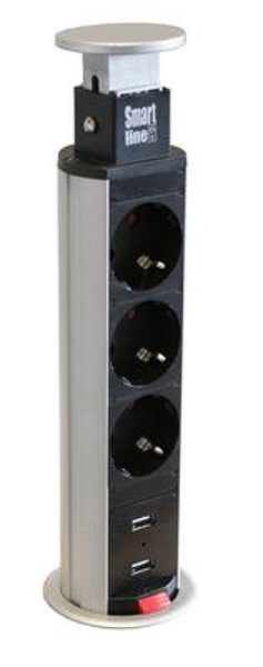 anslutningskabel. Med ett enkelt tryck på toppen lyftes sedan hela uttagslisten