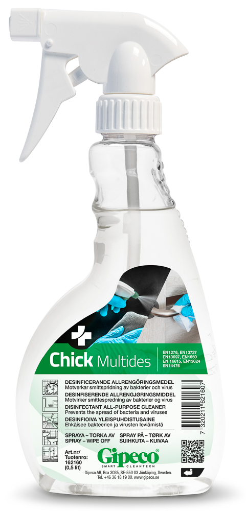 Chick MULTIDES har förutom desinficerande effekt även rengörande effekt och